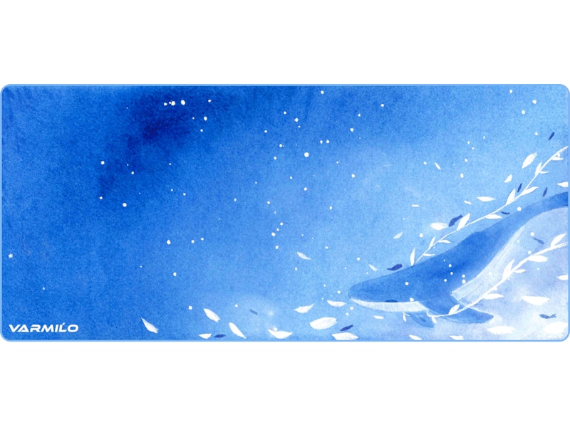 Varmilos extra stora Sea Melody skrivbordsmatta, är en högkvalitativ skrivbordsmatta med blåvalsdesign, den kompletterar perfekt deras Sea Melody-tangentbord och ser även bra ut med alla skrivbordsinställningar.
