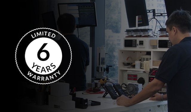 För att säkerställa våra produkters livslängd genomför vi långtidstester under olika, ibland mycket ogynnsamma förhållanden. På så sätt lär vi oss hur vi permanent kan förbättra våra produkter för våra kunder. Dessutom ger de utmärkta resultaten av långtidstester oss försäkran om att våra produkter inte bara är enastående när det gäller kvalitet, utan också när det gäller hållbarhet. Detta är en säkerhet som vi gärna för vidare till våra kunder, därför ger vi 6 års tillverkargaranti.