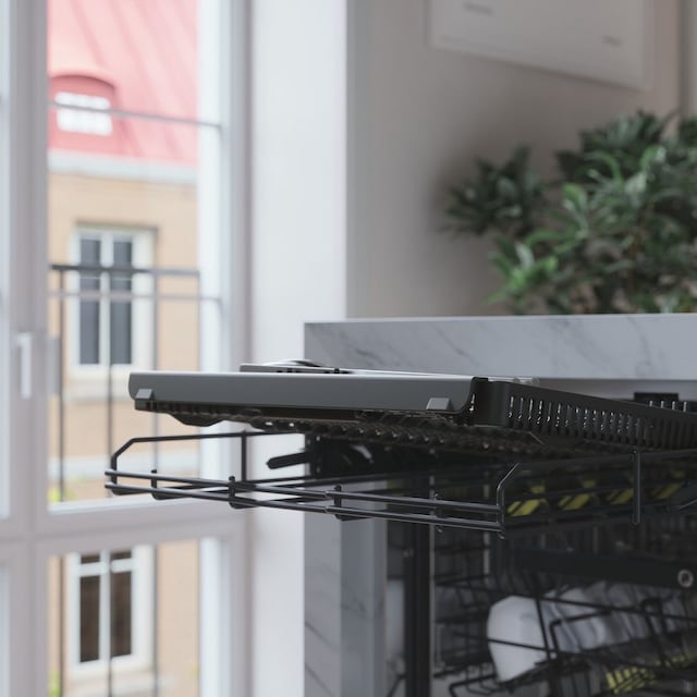 Med ASKOs skensystem med tre nivåer kan du optimera disken. Ta bort, justera, fäll och flytta stativen, hållarna och bestickkorgen efter dina behov.