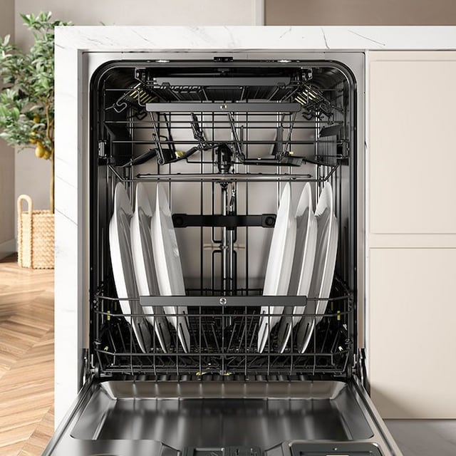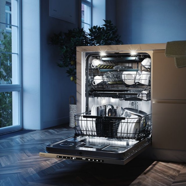 Att öppna dörren på vår nya diskmaskin kan öppna ögonen för lite av varje. Stål av hög kvalitet är kanske det första som fångar din uppmärksamhet. Därefter kanske det är någon av maskinens många smarta funktioner. Dessa framhävs med en färg som imiterar sättet som naturen fokuserar på saker. När man stänger dörren, sätts maskinen tillbaka på plats – där den inte konkurrerar om utrymme eller uppmärksamhet – istället skapar den mer plats.