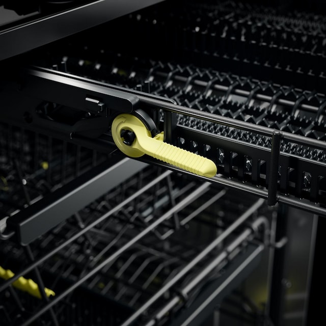 För att göra ett redan kraftfullt rengöringssystem ännu starkare har vi skapat två justerbara "spylzoner" med två olika sprutmönster. Spylzonerna producerar antingen en koncentrerad högtrycksström för extra diskkraft på höga och smala föremål som flaskor och vaser, eller en bredare ström för större fat, grytor och pannor. Det finns också en "brofunktion" där båda spylzonerna är inställda på det breda sprutmönstret för mycket stora fat eller redskap. Spylzonerna fungerar manuellt, så att du kan stänga av dem när du inte behöver dem.