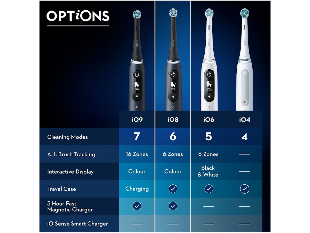 Utöver den rent tekniska utvecklingen för att inkludera industrivetenskap i världsklass, har vi också gjort det möjligt för dig att njuta av den mest exakta, skonsamma och tysta borstningen. Förutom att designa ett föremål som väcker genuint intresse har vi skapat en elegant look förbehållen den mest eftertraktade tekniken. Själva rengöringen blir såklart också bättre när du uppgraderar från en manual till en eltandborste. Men när du går från en eltandborste till en iO går du utöver det vanliga och in i en alldeles extraordinär upplevelse som både kommer att se ut, låta och kännas annorlunda.