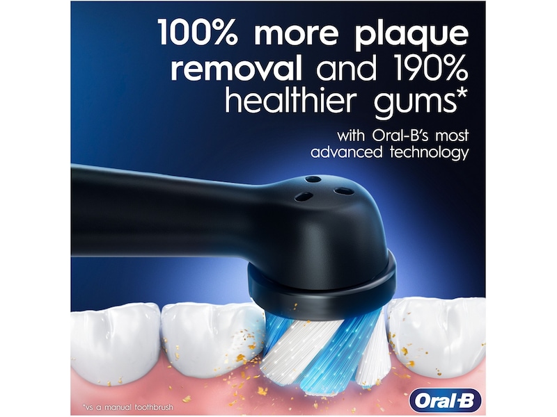På bara 1 vecka, TA BORT 100 % MER PLACK och FÅ 190 % HÄLLARE GUMMI kontra en manuell tandborste genom att byta till ORAL-B:s MEST AVANCERADE TEKNIK.