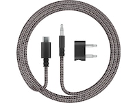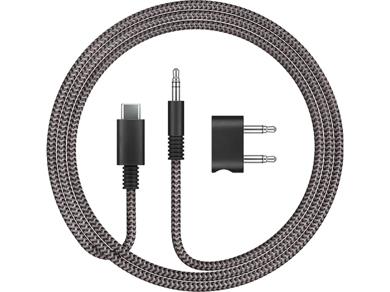 2-stifts flygadapter för att ansluta dina Dyson OnTrac™-hörlurar till de flesta flygunderhållningssystem. Med laddningsport för samtidig laddning.