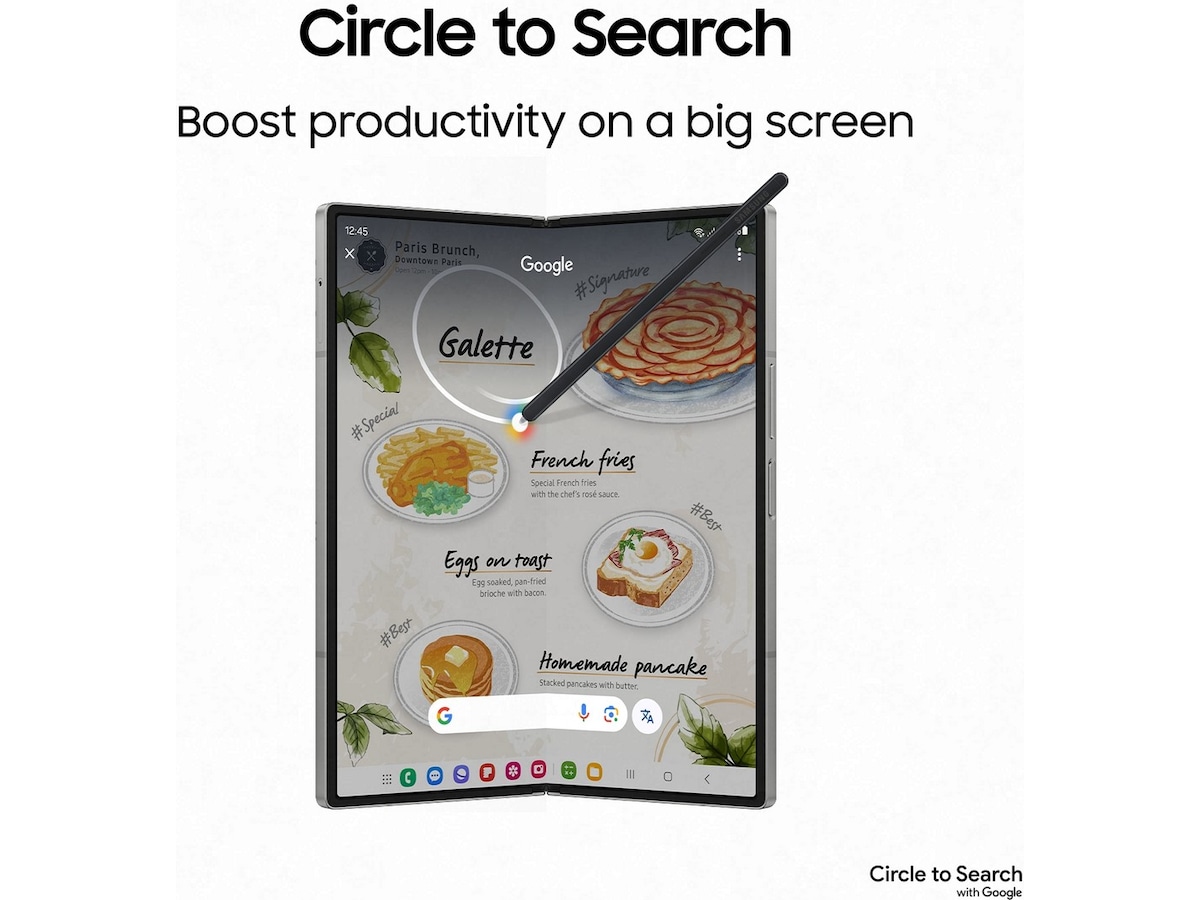 Ring runt för att söka på den stora skärmen*. Det är ett effektivt sätt att söka på en smartphone – skapa bara en cirkel. Öka din produktivitet på den massiva utfällbara skärmen, med fingret eller S Pen.*