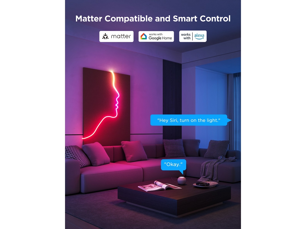 Justera enkelt din belysning via Govee Home-appen, Matter, Alexa eller Google Assistant. OBS: Inget stöd för 5G Wi-Fi.