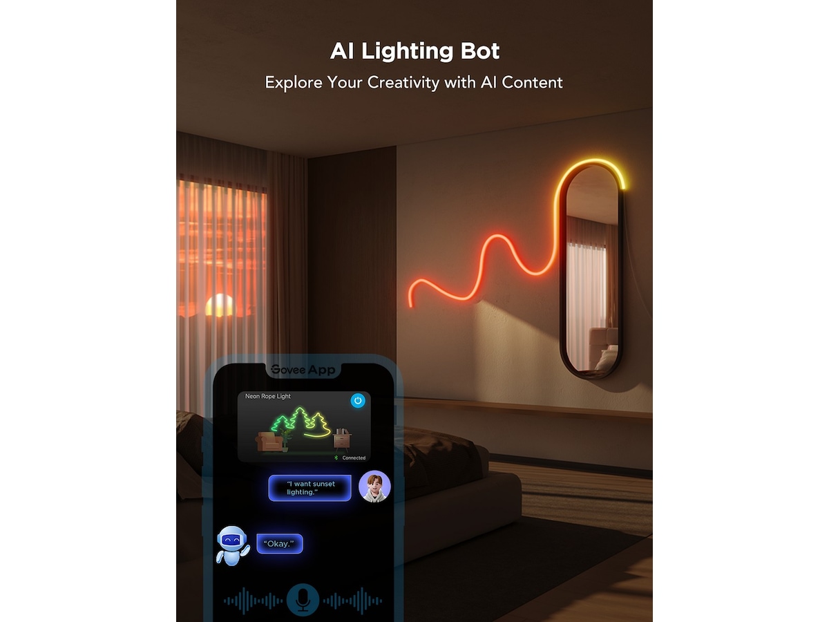 Den här nya generationen Govee neonljus har anpassade ljuseffekter genom Govee Home App.