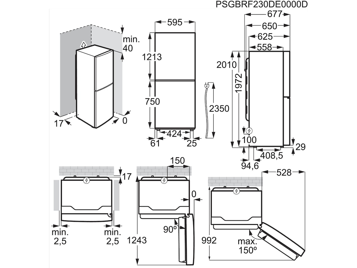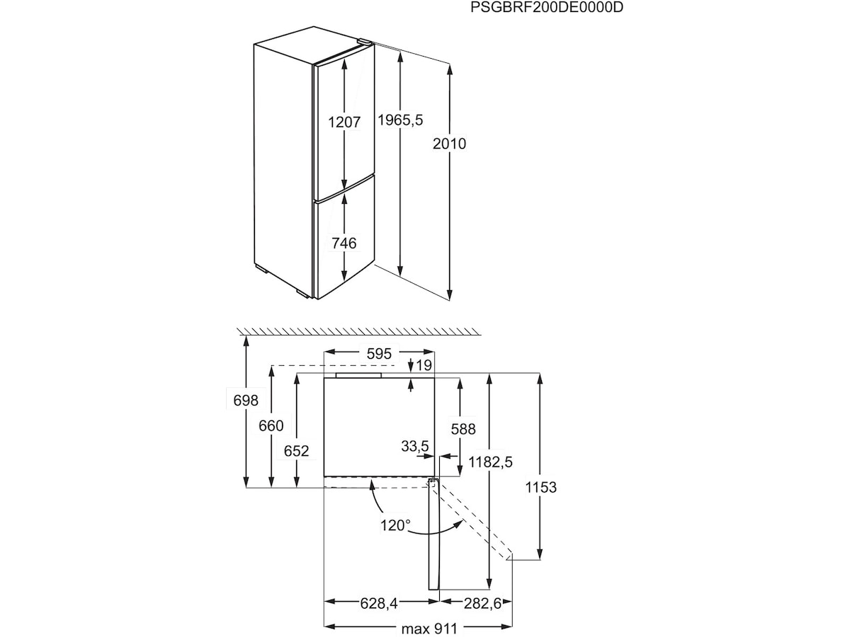 Djup med dörr öppen 90 grader: 115.8 cm, Bredd med öppen dörr: 91.3 cm |