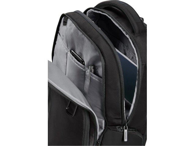 SAMSONITE BIZ2GO datorryggsäck 14,1" har ett organiserat huvudfack med dokumenthållare, rymmer 20,5 L och är tillverkad av 100% rPet polyester.