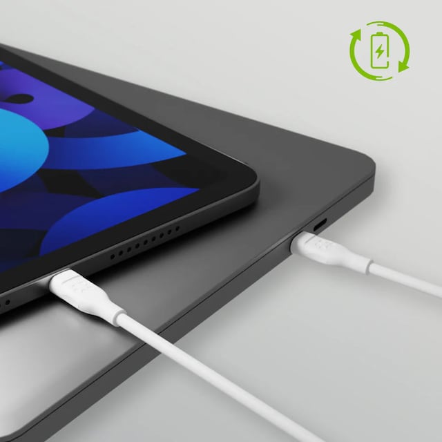 Oavsett om du laddar eller kopplar ihop enheter erbjuder våra kablar snabb dataöverföring med en topphastighet på 480 Mbps. Välj mellan resistenta TPE-kablar gjorda av 100 % återvunnen plast eller flätade kablar gjorda av 100 % återvunna tyger, zinklegering och plastmaterial