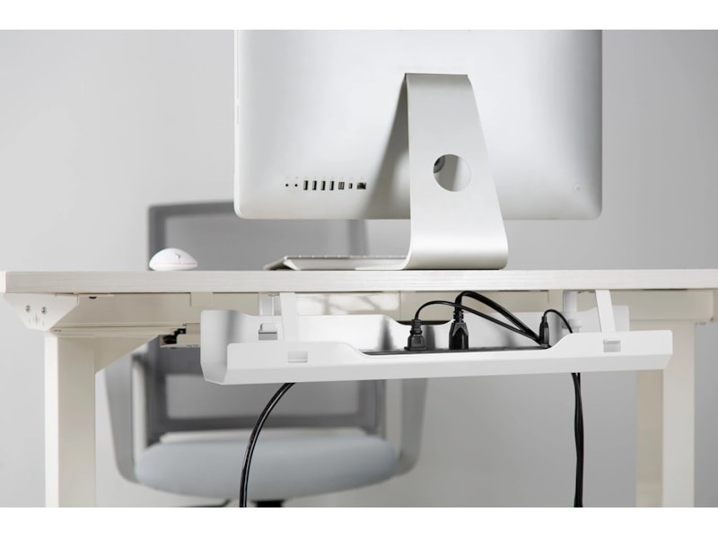 Det är städat på skrivbordet. Du har rena snygga skärmar i rätt vinkel, en snygg musmatta i läder och kanske en krukväxt. Och så är det spaghettin inlindad under skrivbordet, alltså. Bli av med det en gång för alla! Dra en förlängningssladd eller nav från närmaste uttag in i kabelgömmen så kan alla display- och laddningskablar ligga snyggt ihoprullade och dolda för omvärlden.