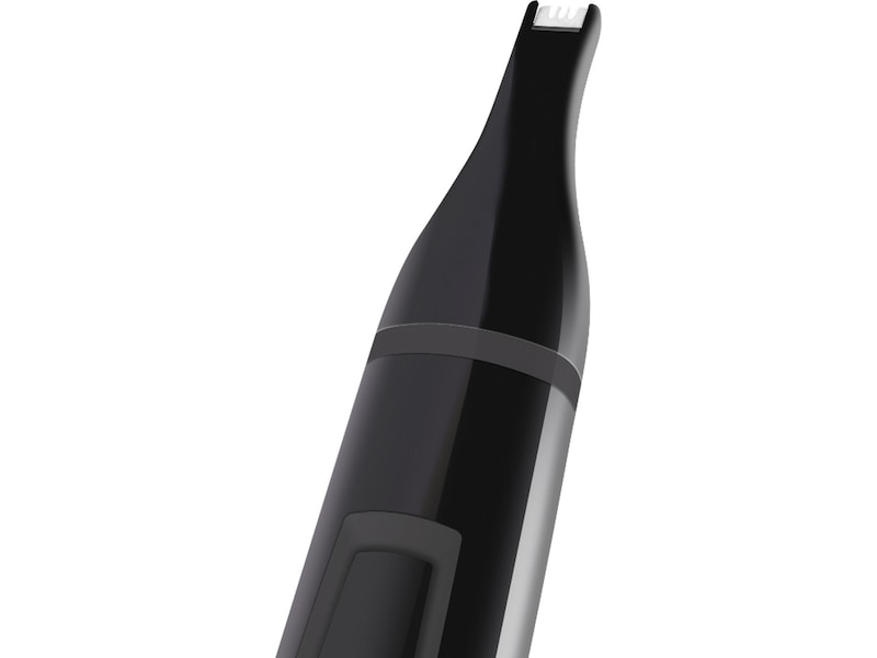 Denna batteridrivna näs/örontrimmer har ett vertikalt klippsystem som även gör det enkelt att fixa ögonbryn, mustaschen och polisongkanter. Sköljbart klipphuvud för enkel rengöring.