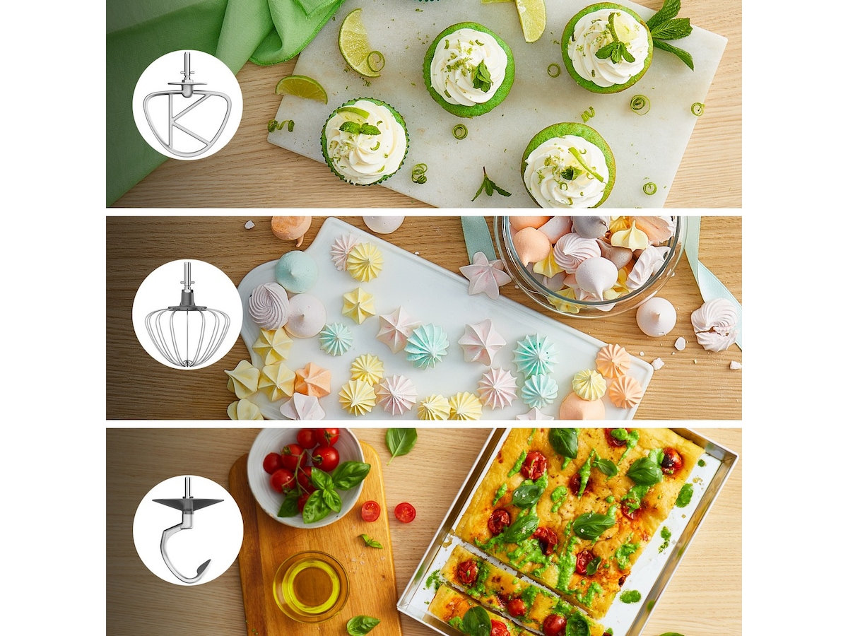 En 4L mixerskål, 3 höjdjusterbara och ändamålsenliga verktyg och 800w hållbar motor gör att Go kan skapa en tvåvåningstårta, pizzor för hela familjen eller ett bröd utan att svettas.
