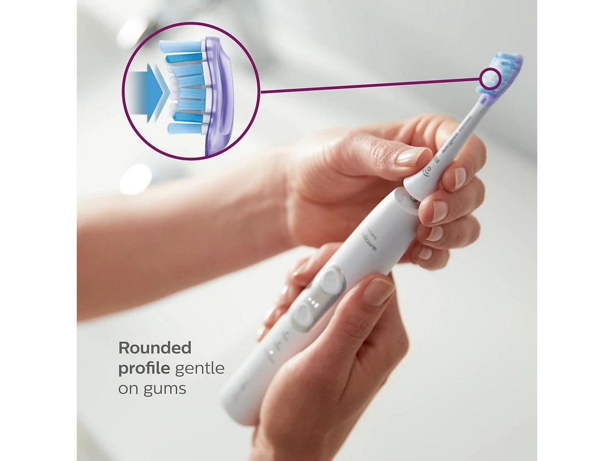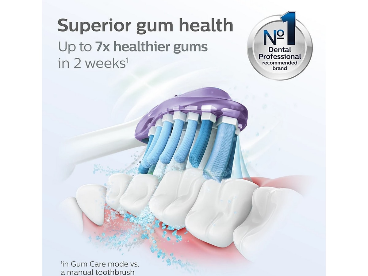 Philips Sonicares avancerade ljudteknik pulserar vatten mellan tänderna, medan borsten bryter upp plack och borstar bort det för att ge dig en mycket bra daglig borstning.