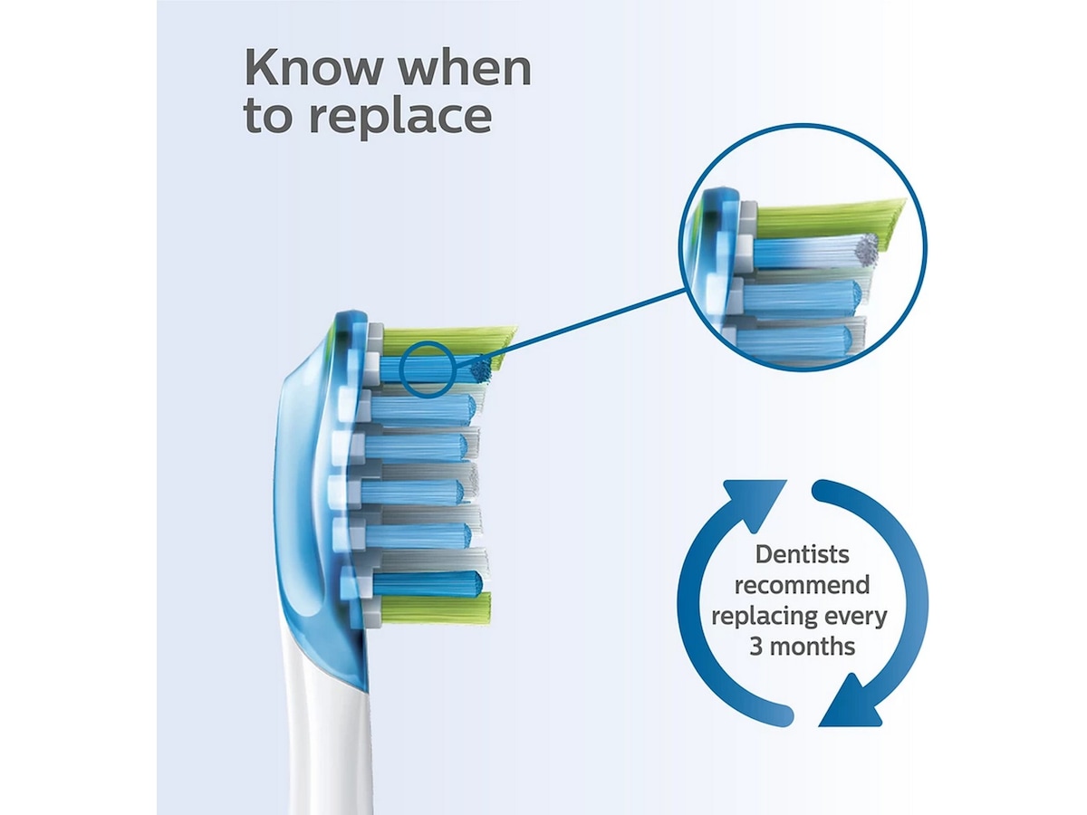 Borsthuvudena blir mindre effektiva efter tre månaders användning, men med BrushSync™ får du ett meddelande när de ska bytas ut. Den smarta tandborsten övervakar hur ofta och hårt du borstar, och talar om för dig när det är dags att byta borsthuvud. Har du ingen Philips Sonicare-tandborste? Du behöver bara hålla ett öga på de blå reservborstarna. När de blir vita vet du att det är dags för ett nytt borsthuvud.