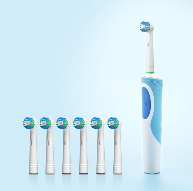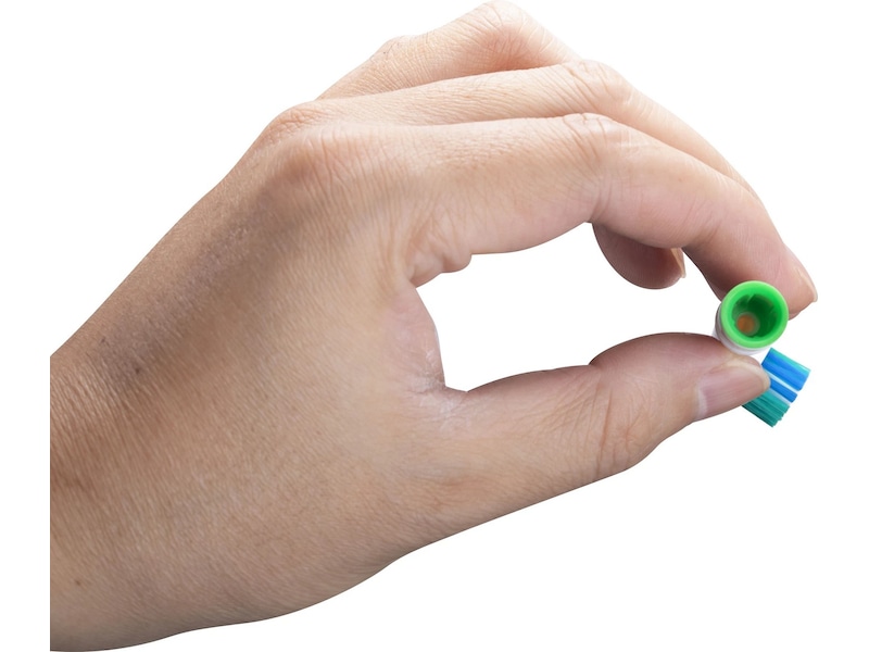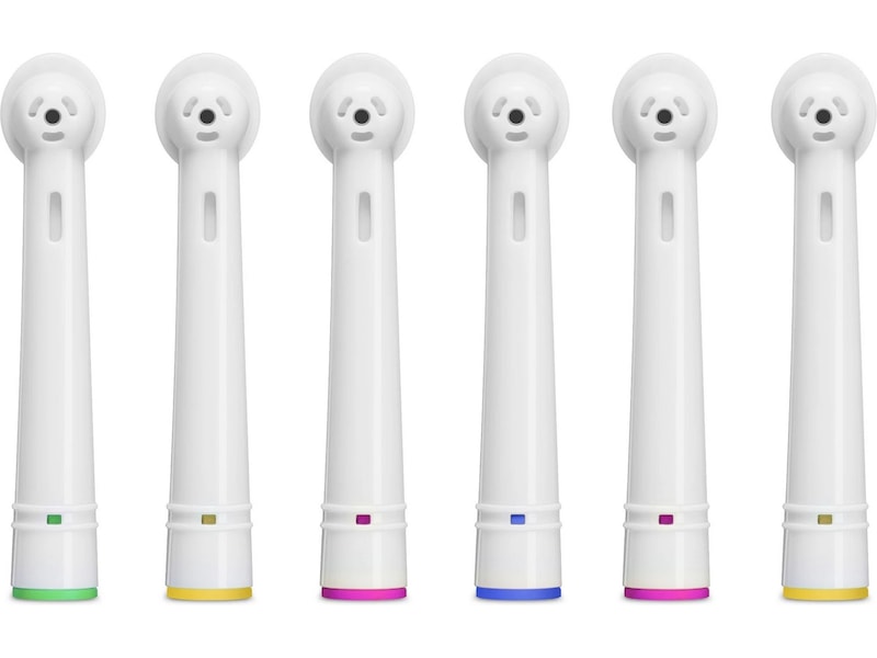 De runda huvudena med mjuka borst skyddar tänder och tandkött från hård borstning. Setet innehåller fyra olika färger, vilket gör det enkelt att identifiera din tandborste i familjebadrummet.