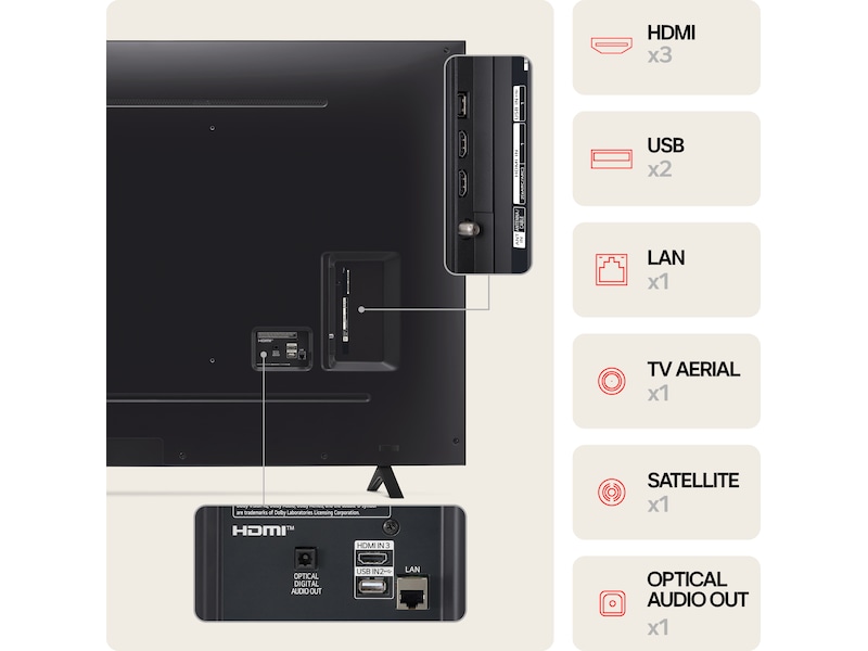 3 x HDMI, LAN, Digital ljudutgång (optisk), 2 x USB 2.0 |