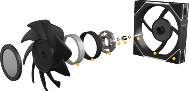 Förreglingsnyckeln i änden av TL LCD-fläktar är löstagbar för ökad kompatibilitet och mindre störningar med andra komponenter.
