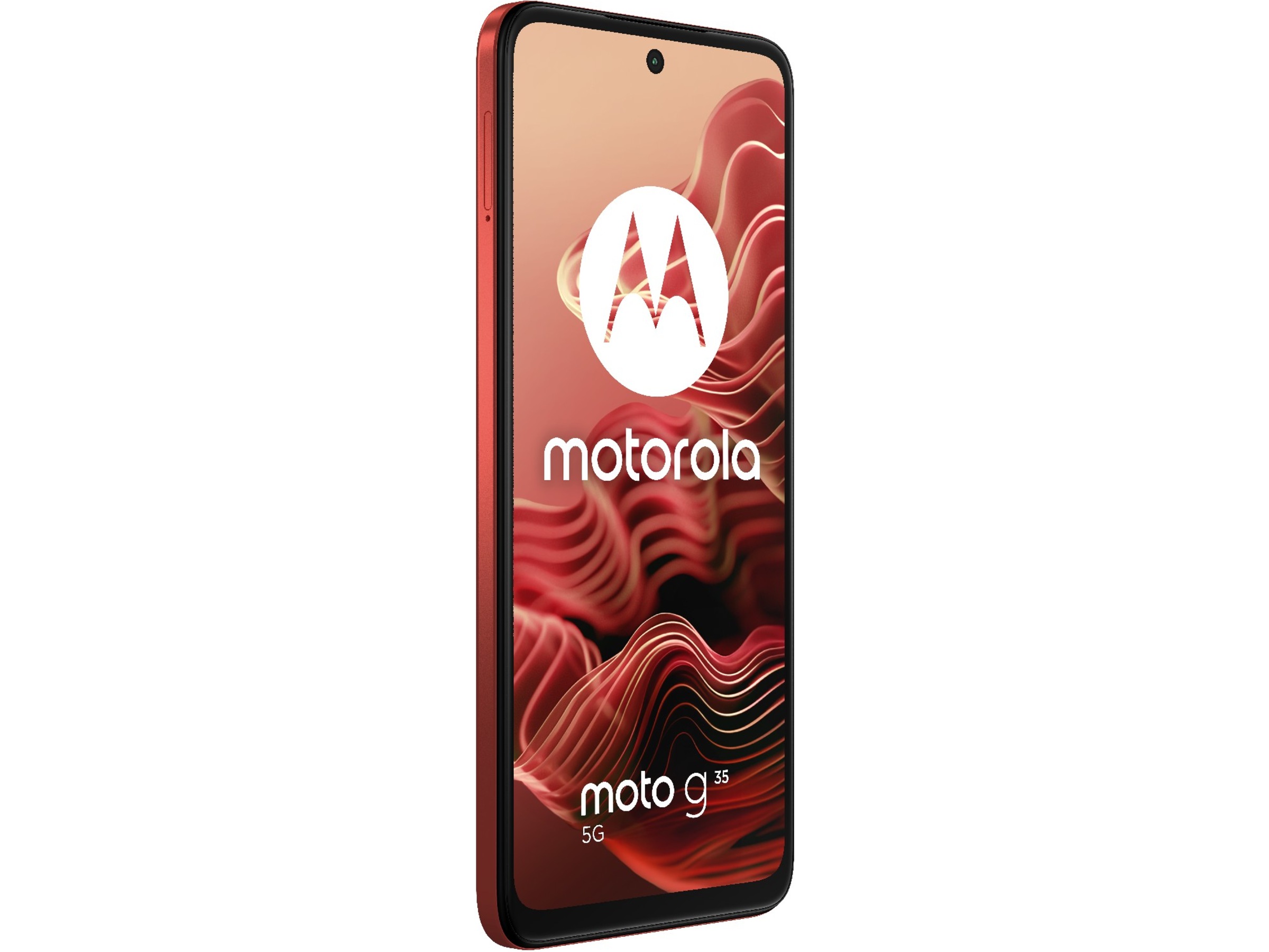 Livets största ögonblick förtjänar en stor scen. Möt moto g35 5G. Med en enorm 6,72" FHD+-skärm kommer dina filmer, spel och videosamtal till liv även i starkt ljus med 1000 nits toppljusstyrka. Allt backas upp av flerdimensionellt Dolby Atmos®-ljud på stereohögtalare eller dina favorithörlurar. Ta hisnande bilder med det ultravida objektivet, eller ta skarpa och ljusa bilder i vilket ljus som helst med 50 MP-kameran med Quad Pixel-teknik. Njut av en fantastisk, ultratunn premiumdesign, inklusive ett alternativ med den lyxiga känslan av veganskt läder. Släpp lös supersnabb 5G-prestanda med en åttakärnig processor – plus få 8 GB RAM och upp till 256 GB lagringsutrymme. Och se till att det roliga aldrig tar slut tack vare ett långvarigt batteri. moto g35 5G är gjord för stora ögonblick.