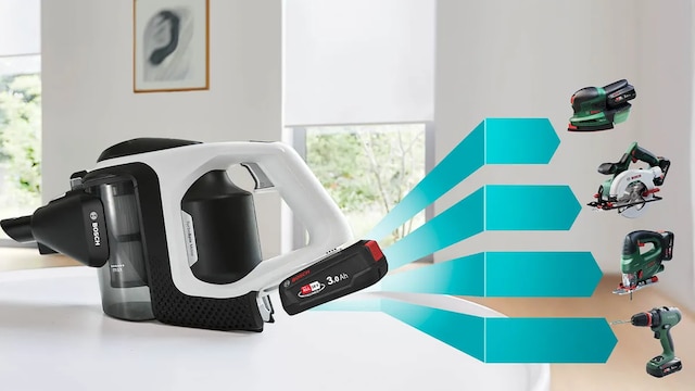 Vår mest kompakta sladdlösa dammsugare i en elegant blå färg. Det utbytbara batteriet är en del av Power for ALL-systemet och är kompatibelt med många produkter från Boschs gröna linje.