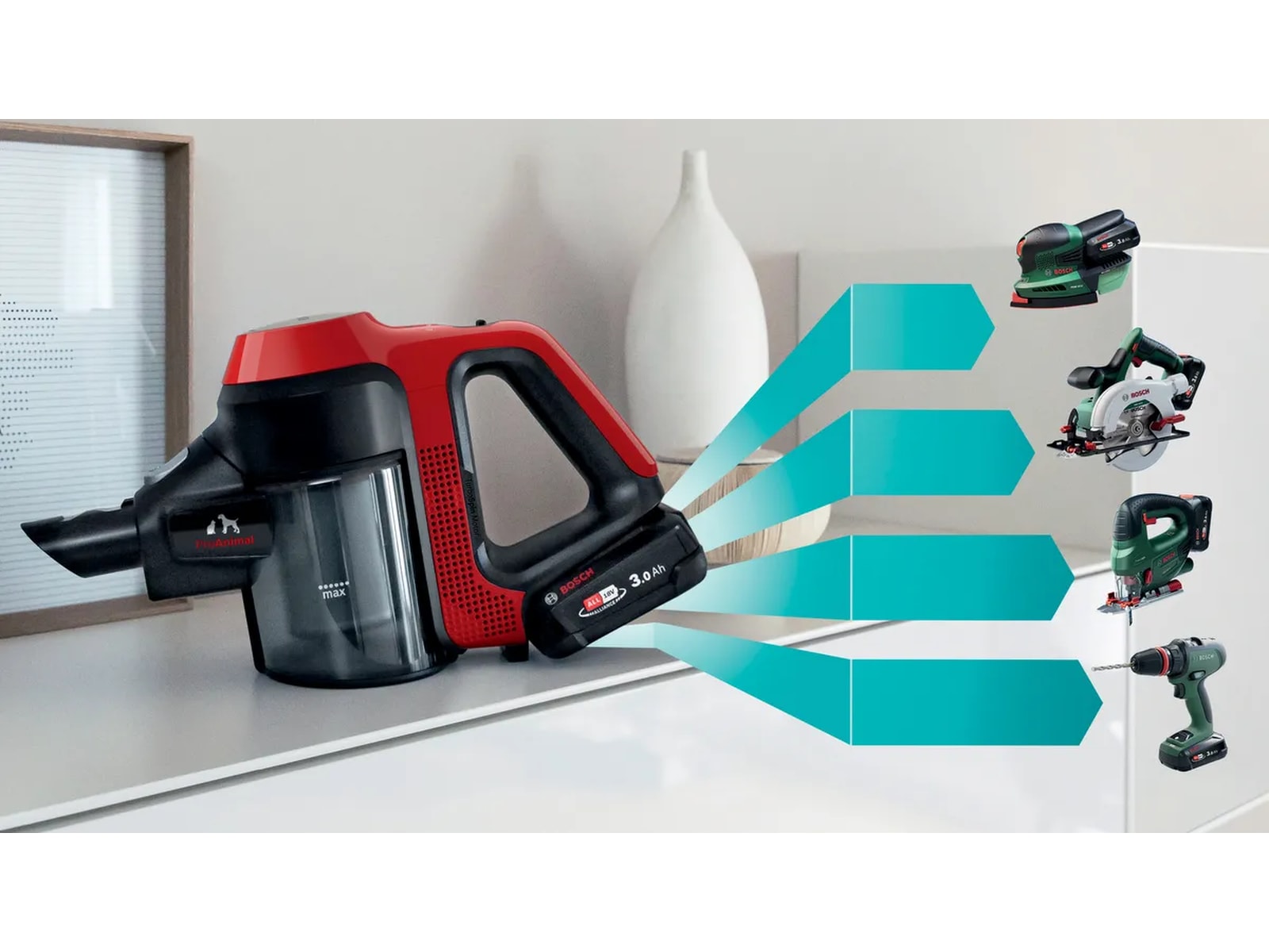 Med det kraftfulla och långvariga 3,0 ah Power For All-batteriet från Bosch kan även krävande städuppgifter klaras av utan problem. Litiumbatteriet är uppladdningsbart, utbytbart och skyddat mot överhettning, överladdning, självurladdning och minneseffekt. Dessutom ger batteriet 33 % mer drifttid, vilket säkerställer kraftfull prestanda under en längre period. Du kan städa upp till 100 m2 med bara en batteriladdning - utan avbrott och utan att oroa dig för tidskrävande laddning.