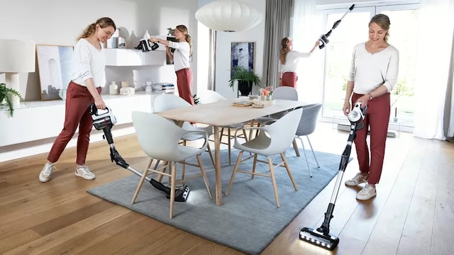 Spara tid och energi med den fristående funktionen. Växla enkelt mellan golvstädning med heldammsugaren till rengöring med handdammsugaren. Medan du städar med handdammsugaren står resten upprätt av sig själv. Du behöver inte lägga dammsugaren på golvet eller lämna tillbaka den till laddstationen. När du är klar med den handhållna enheten sätts den snabbt tillbaka på plats så att du kan fortsätta att rengöra dina golv.