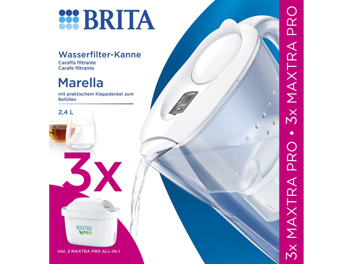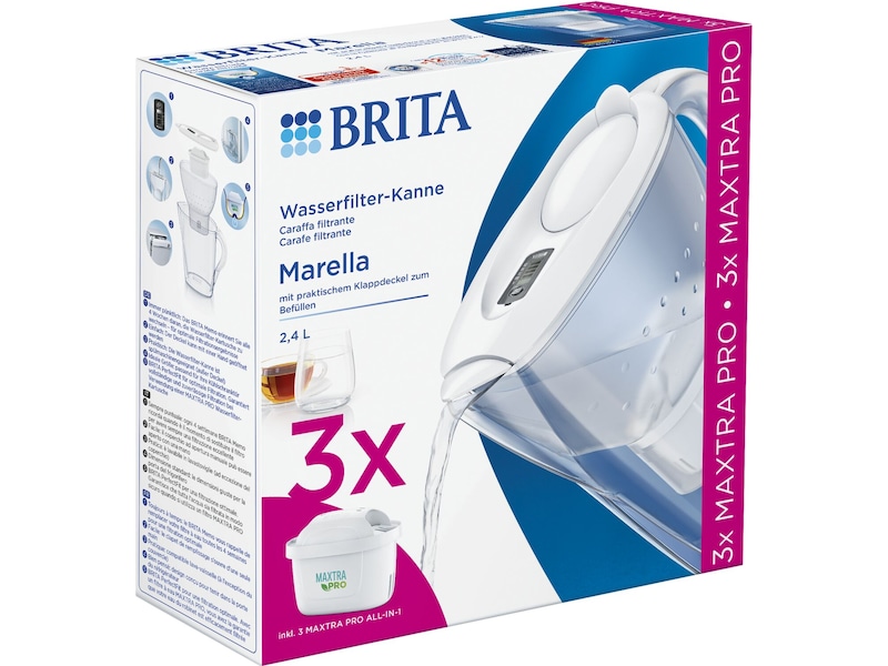 De innovativa mikrokolpärlorna i Brita Marella Memo Maxtra+ -vattenfilterkannan filtrerar klor och organiska föroreningar ännu mer effektivt, vilket gör ditt vatten extra fräscht. Jonbytarpärlor låser in t.ex. koppar och kalk, vilket förlänger livslängden på dina hushållsapparater.