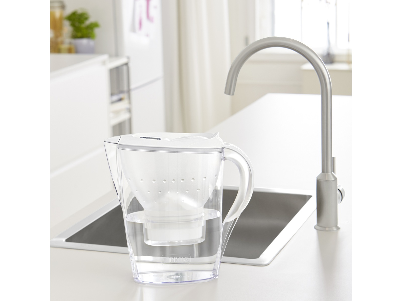 Den moderna filterkannan är utformad för att passa perfekt i kylskåpsdörren, du har alltid färskt och kallt vatten tillgängligt.