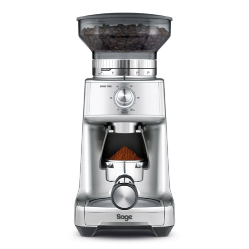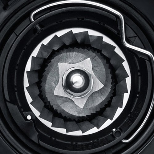 Konisk kaffekvarn i rostfritt stål som har utvecklats för att minimera värmen i kvarnen och skydda eteriska oljor i kaffebönan.