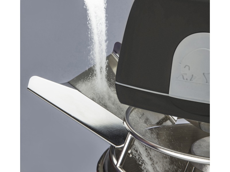 TEDDY comes with a 5-litre stainless steel mixing bowl with a lid, a wire whip made of 2.5 mm wire, a beater and a specially designed hook which ensures dough is kneaded and turned to perfection. All accessories are made of stainless steel and are dishwasher-safe. The machine is also available in white with an attachment drive for mounting a stainless steel meat mincer.