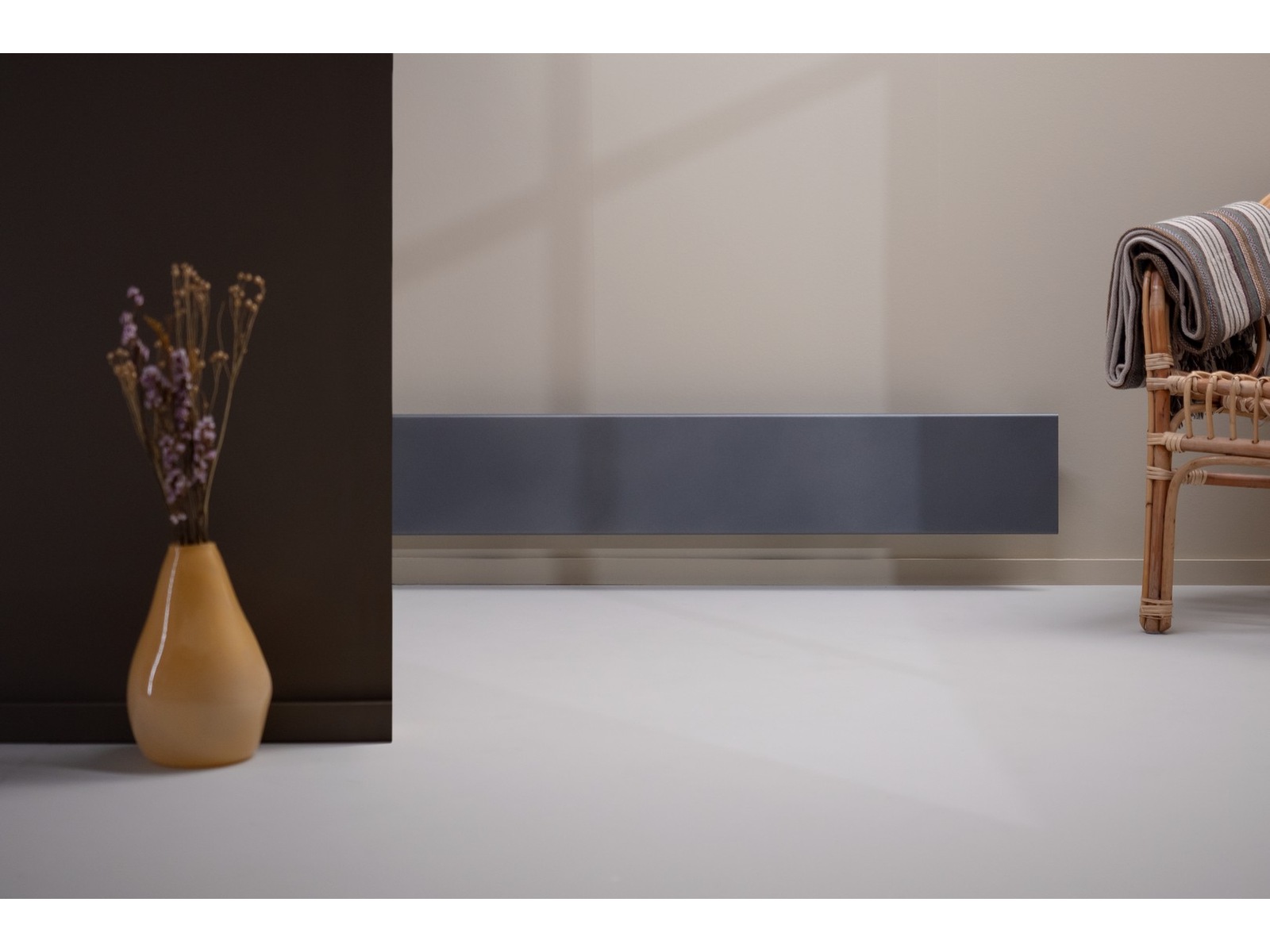 Som låg list är Neo perfekt att placera under stora eller höga fönster eller burspråk. Listans höjd är 210 mm, och den finns i färgerna White, Sparkling Grey och Pearl Black.