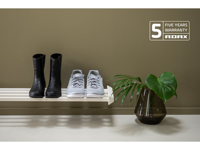 Ger snabb och effektiv torkninga av våta skor, handskar och mössor. Torkhyllan finns i två storlekar och kan monteras på väggen eller läggas direkt på golvet.