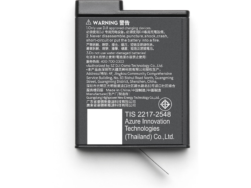 - Laddningstiden mättes under laboratorieförhållanden vid 25°C, medan DJI 30W USB-C-laddare användes, med fototagnings-/videoinspelningsfunktionerna avstängda och avstängda. Användningstiden mättes under laboratorieförhållanden vid 25°C, under inspelning av 1080p/24fps (16:9) video, med RockSteady på, Wi-Fi avstängt och skärmar avstängda. Data samlades in i en kontrollerad miljö och bör endast ses som referens.