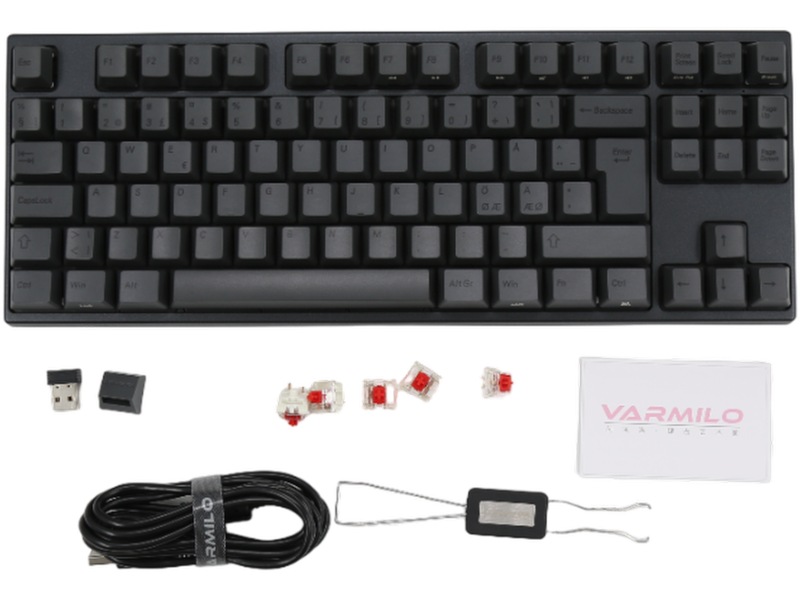 Billiga keycaps håller inte länge, och alfabetet som skrivs ut på dem bleknar med tiden. Varmilos keycaps är gjorda av PBT-plast som är slitstark. Bokstäverna på keycapsen är tillverkade av olika plast och de är direkt gjutna på tangenterna. Därför bleknar de aldrig.