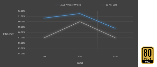 ASUS Prime 750W Gold PSU har effektiva kondensatorer med låg ESR för att säkerställa effektiv drift – vilket ger den 80 PLUS® Gold-status. Detta innebär att den levererar upp till 92 % effektivitet, vilket resulterar i mindre värme, minskat fläktljud och ökad tillförlitlighet.