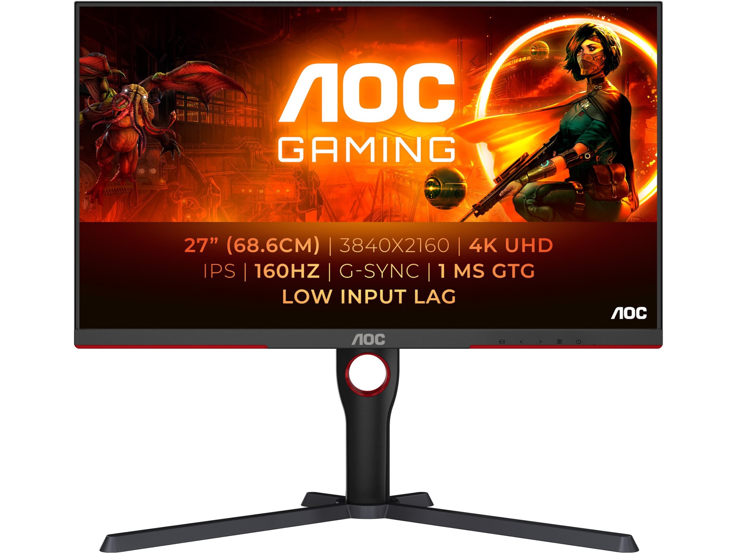 Få oöverträffade spelupplevelser med 27-tums 4K UHD-skärmen U27G3X/BK: 160 Hz uppdateringsfrekvens, 1 ms responstid, skarp IPS-panel och GSync-kompatibilitet