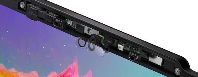 Egenskaper Ultraljudsdetektering av människor, IR-kamera, Fast fokus, Temporal Noise Reduction, Windows Hello, Webkamera skydd