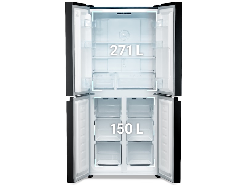 Avant MDR79DI1 kombiskåp erbjuder stor kapacitet och smarta funktioner för optimal matförvaring. Med ett rymligt kylskåp på 421 liter och en frys på 150 liter kan du enkelt anpassa förvaringen efter dina behov. Elektronisk styrning med en extern LED-touchskärm ger precis temperaturkontroll, medan No Frost-funktionen eliminerar behovet av avfrostning. Air Circle-systemet säkerställer jämn kylning, och flexibla hyllor, lådor och dörrhyllor ger praktiska förvaringsmöjligheter. ECO-läge minskar energiförbrukningen utan att kompromissa med prestandan, och den effektiva LED-belysningen gör det enkelt att hitta det du behöver.