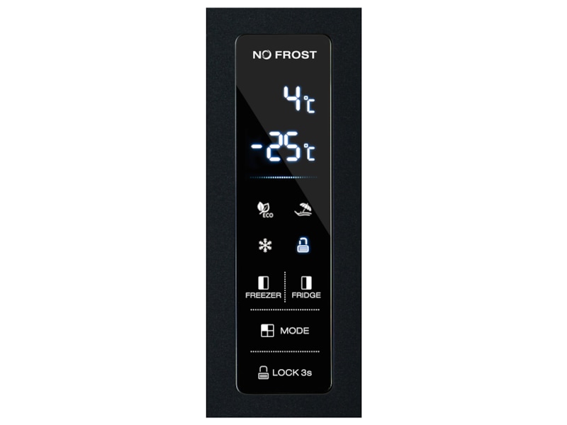 Kombiskåpet är utrustat med elektronisk kontroll som ger dig enkel och exakt temperaturreglering. Med den externa LED-touchskärmen kan du enkelt justera inställningarna för att optimera förhållandena i kyl- och frysdelen.