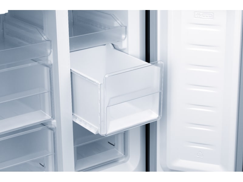 Kombiskåpet är utrustat med flera hyllor för att ge maximal förvaringsmöjlighet. Praktiska lådor ger gott om plats för frukt, grönsaker och andra livsmedel, medan rymliga dörrhyllor gör det enkelt att förvara drycker, mejeriprodukter och mindre förpackningar. Detta ger dig möjlighet att hålla ordning och struktur i skåpet.