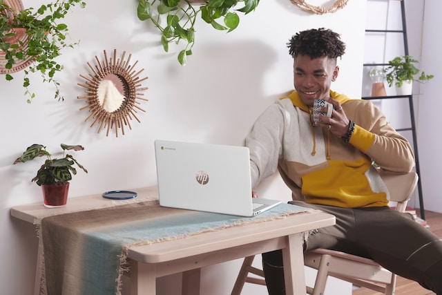 Det bästa inom jobb och underhållning med allt på ett ställe. HP Chromebook har en responsiv Intel®-processor, bildskärm på 14 tum (35,6 cm) med mer skärmutrymme, högtalare som ärfinjusterade av ljudexperterna hos B&O och lång batteritid. Du kan få alla dina uppdrag gjorda medan du sträcktittar på dina favoritprogram.