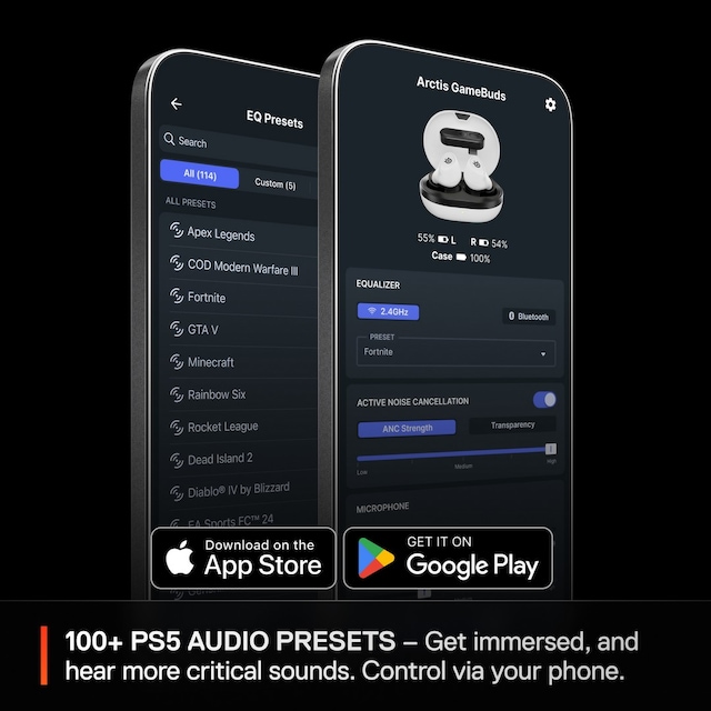 TRÅDLÖSA HÖRSNAPPAR SPELAR NU. FÖR ÄRA: Arctis GameBuds™ med aktiv brusreducering, 2,4 GHz trådlöst, BT 5.3 och 100+ ljudförinställningar via mobilapp.