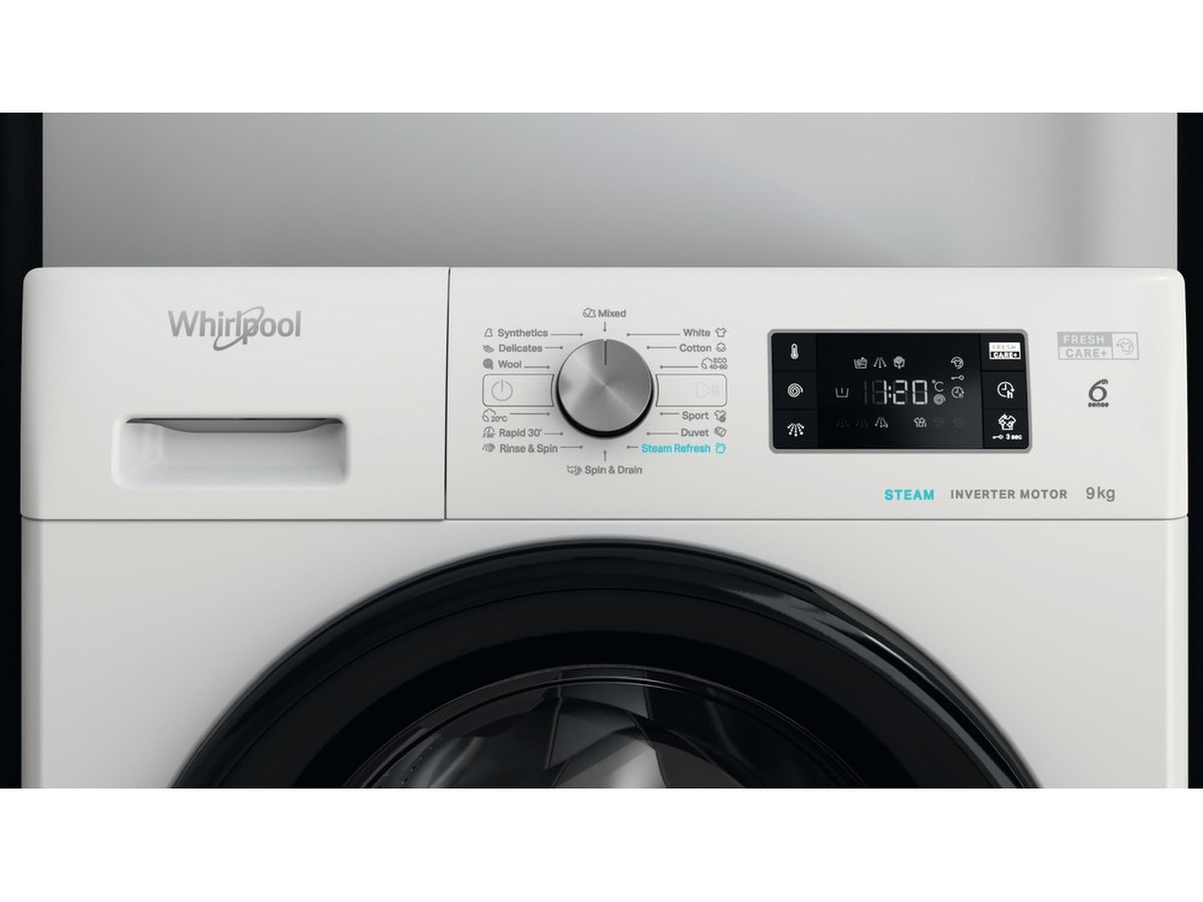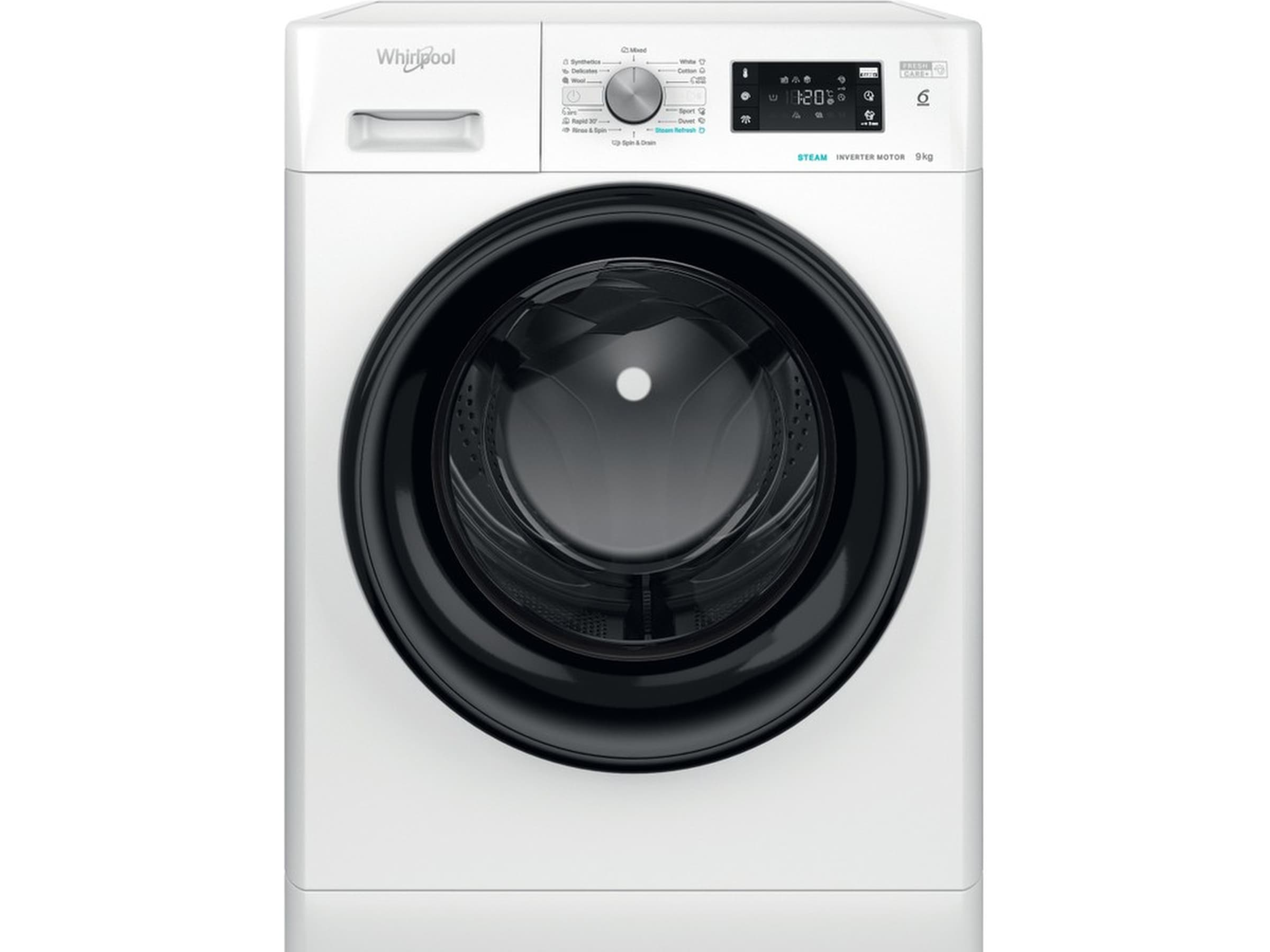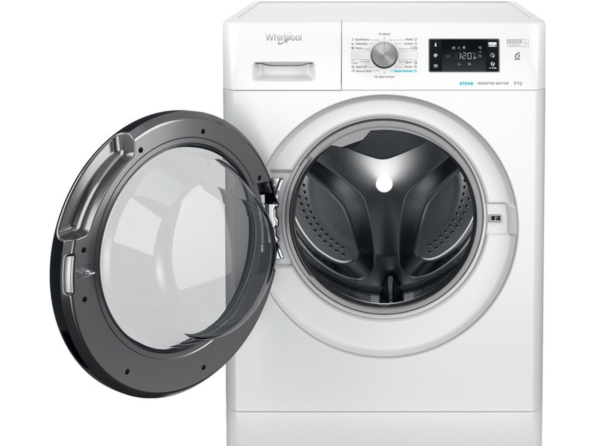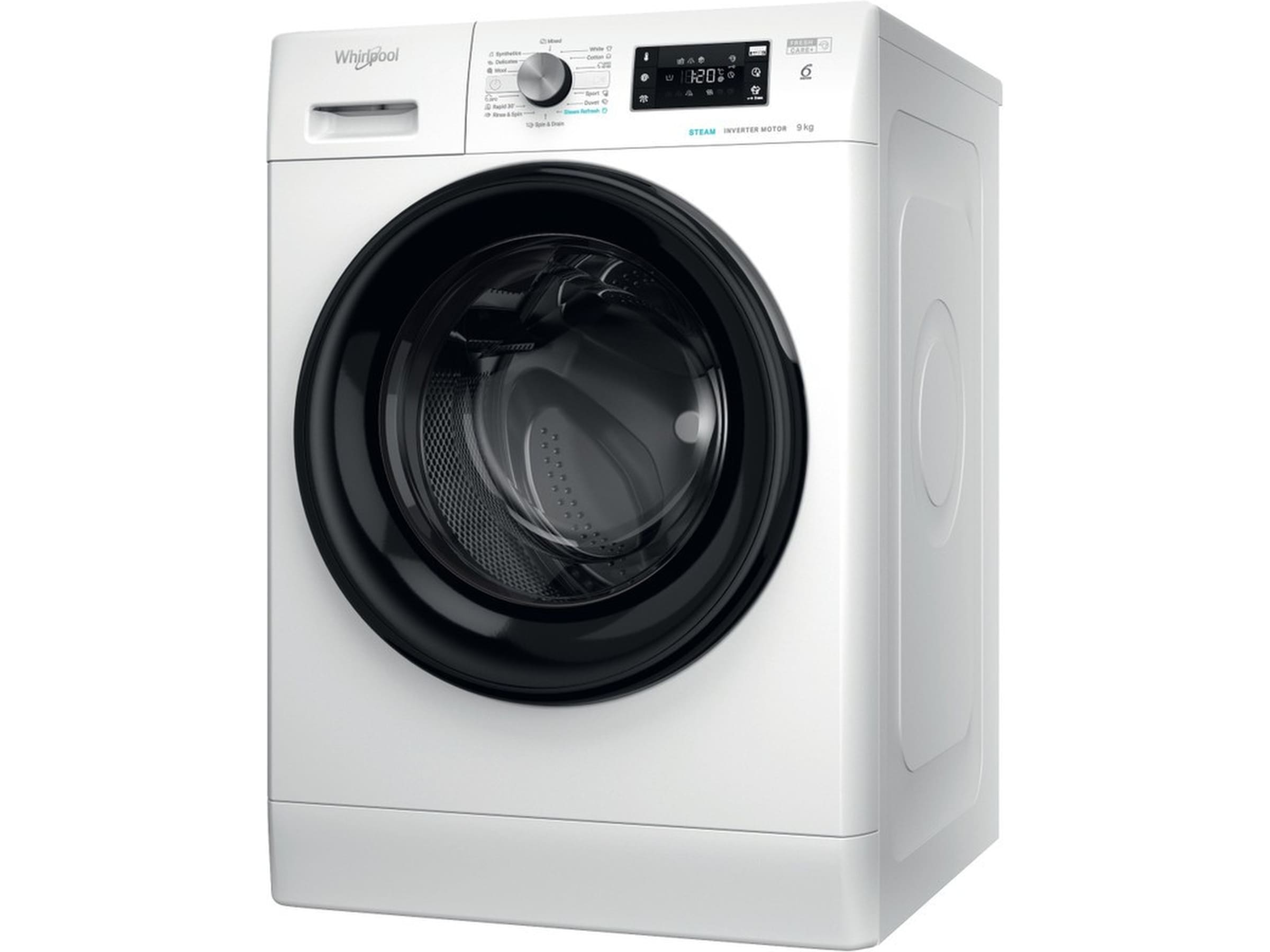 Med en trumkapacitet på 9 kg erbjuder den här Whirlpool-tvättmaskinen allt utrymme du behöver för din tvätt.