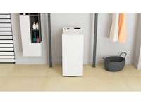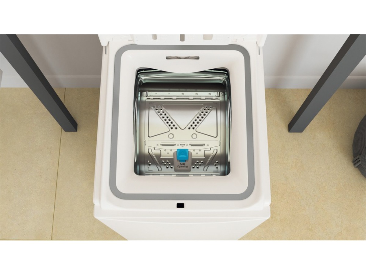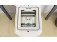 Toppmatad tvättmaskin med en "Drum-up" funktion som innebär att maskinen alltid slutar tvättcyklen med trumöppningen uppåtvänd - för att du snabbt och bekvämt ska kunna öppna luckan och ta hand om tvätten.