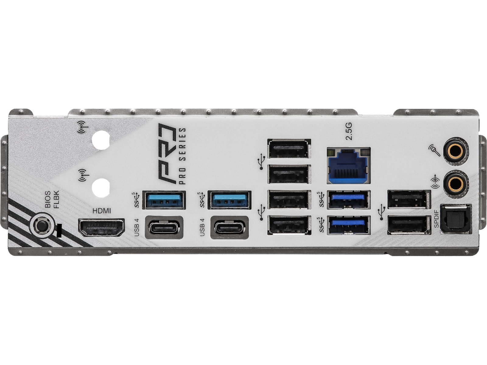 Gränssnitt 1 x ljudutgång - mini-jack, 2 x USB4, 1 x SPDIF-utgång, 1 x LAN (2.5Gigabit Ethernet), 4 x USB 3.2 Gen 1, 6 x USB 2.0, 1 x mikrofon - mini-jack, 1 x HDMI