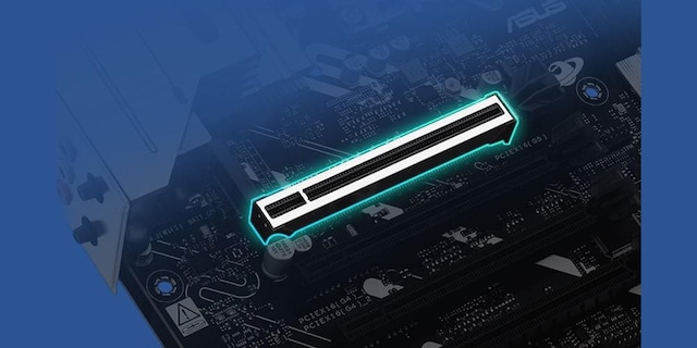 PCIe 5.0 är dubbelt så snabb som PCIe 4.0. ASUS har anpassat vår SMT-produktion till det snabbare SafeSlot, ett förstärkt metallhölje som säkerställer säker kortinstallation och högre datahastigheter.