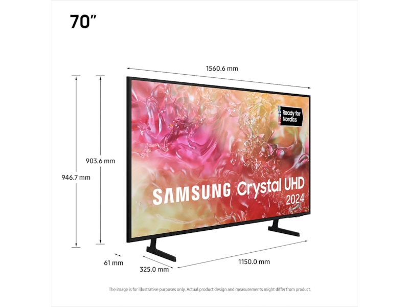 Ställ (minimum) - 34.66 cm x 32.5 cm, Skärm utan ställ - 156.06 cm x 6.1 cm x 90.36 cm x 22.2 kg, Skärm med ställ - 156.06 cm x 32.5 cm x 94.67 cm x 22.8 kg, TV-bänk - 115 cm x 32.5 cm