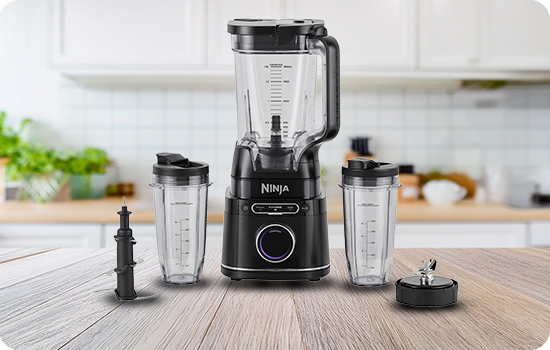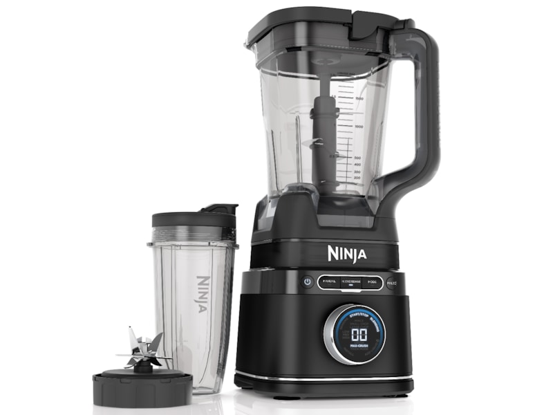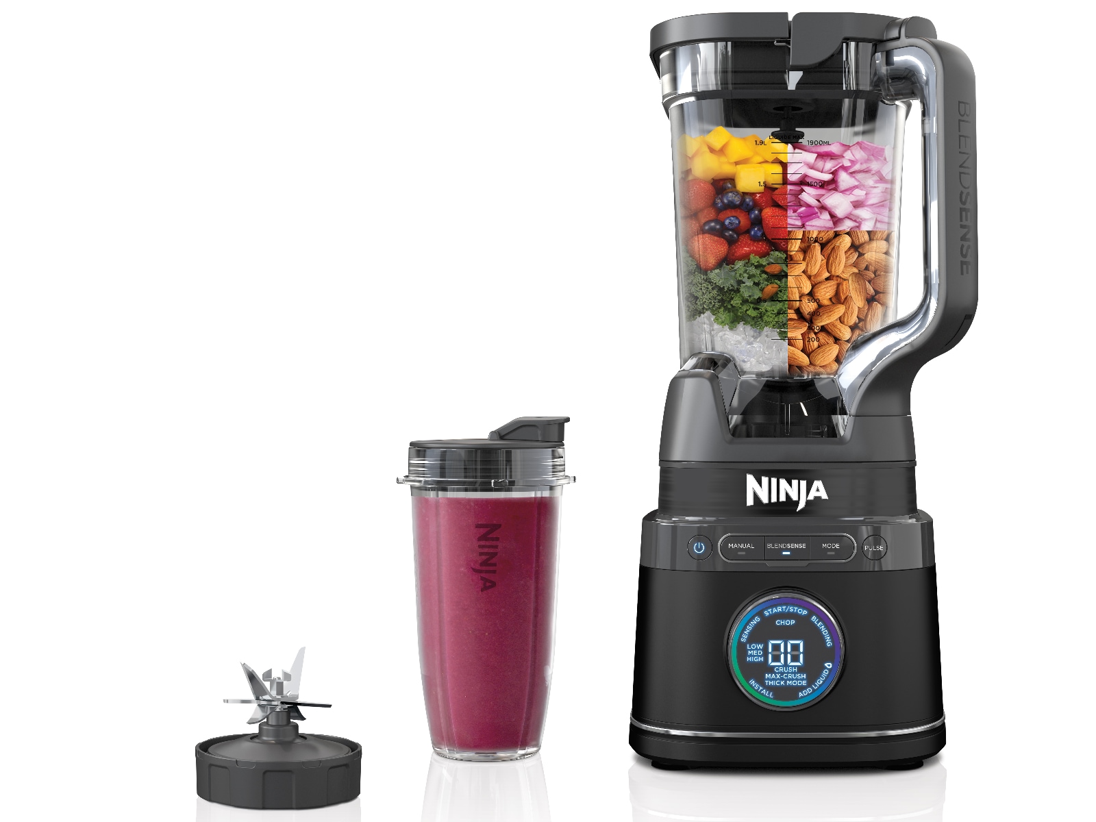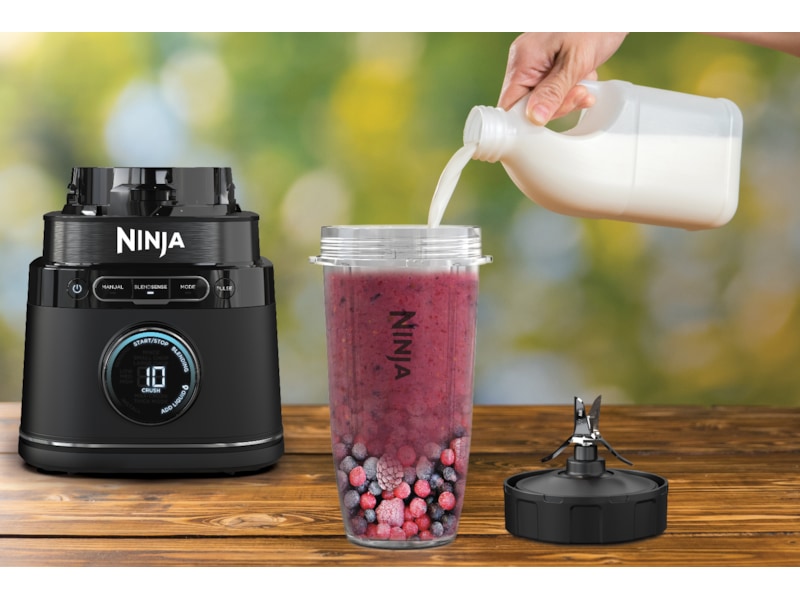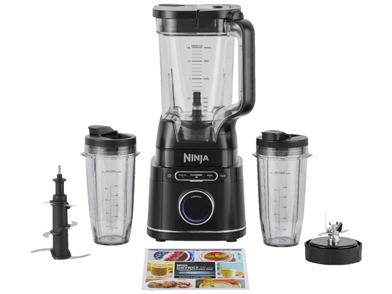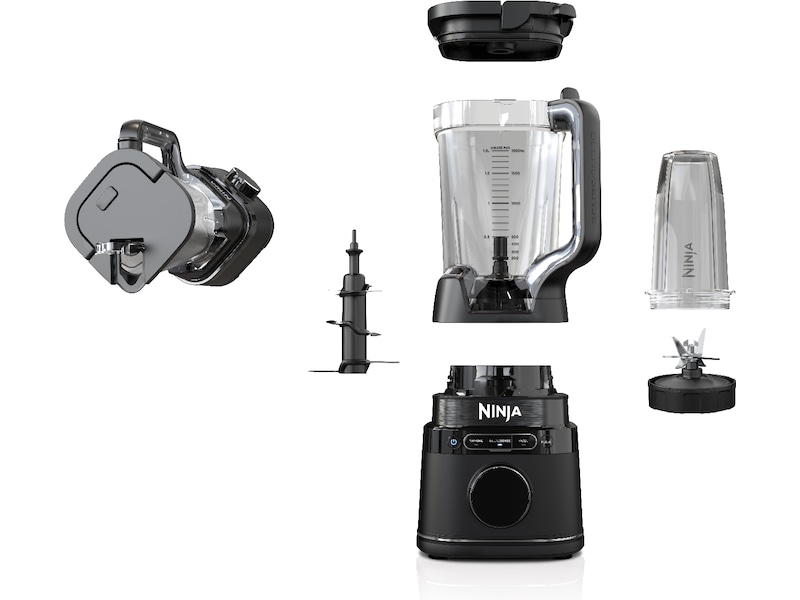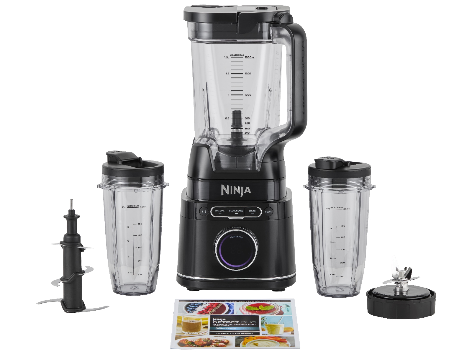 Paketet innehåller allt du behöver för att komma igång: Blender, 2,1L behållare, två 700ml-koppar, Ninja Detect Total Crushing & Chopping Blade och Hybrid Edge Blades och en användarmanual.