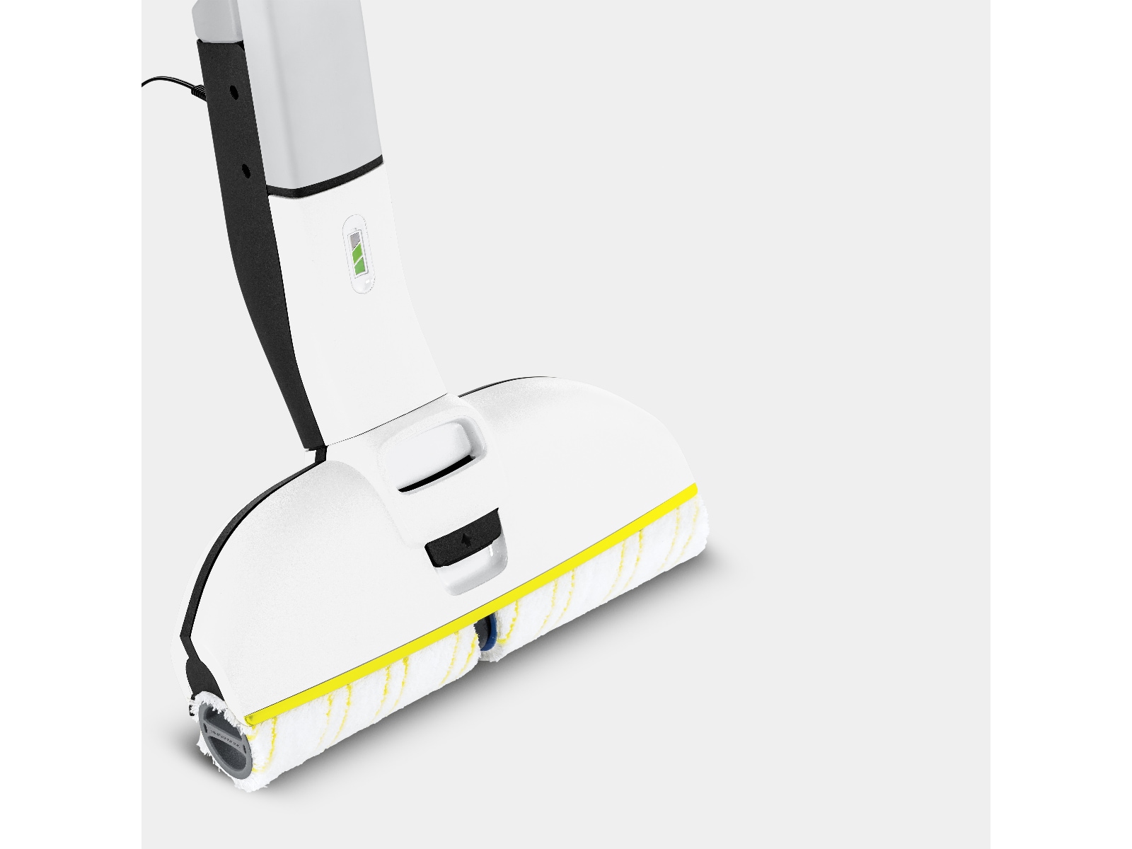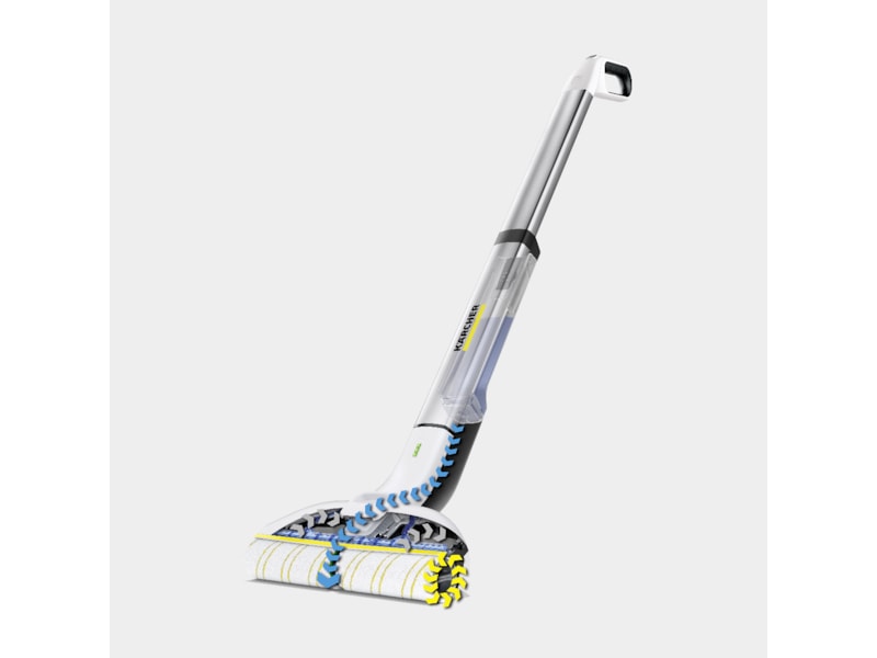 Gulvvaskaren gör dina golv 20 % renare än rengöring med vanlig mopp. De roterande valsarna fuktas kontinuerligt med rent vatten, medan smuts och smuts förs in i smutsvattentanken. Tack vare den slanka designen kan EWM 2 enkelt nå under möbler och sparar samtidigt lagringsplats. Den har också en ledad ledd som gör det enkelt att rengöra hörn och kanter. Torktiden för golvet är ca 2 minuter, vilket gör den lämplig för alla typer av hårda golv, vare sig det är trä, sten eller plast. Det kraftfulla litiumjonbatteriet ger maximal rörelsefrihet, eftersom rengöringen inte längre är beroende av ett eluttag. Den intuitiva LED-skärmen ger kontinuerlig information om batterinivån. Batteriet har en drifttid på upp till 20 minuter, vilket är tillräckligt för att rengöra ett område på ca 60 m².
