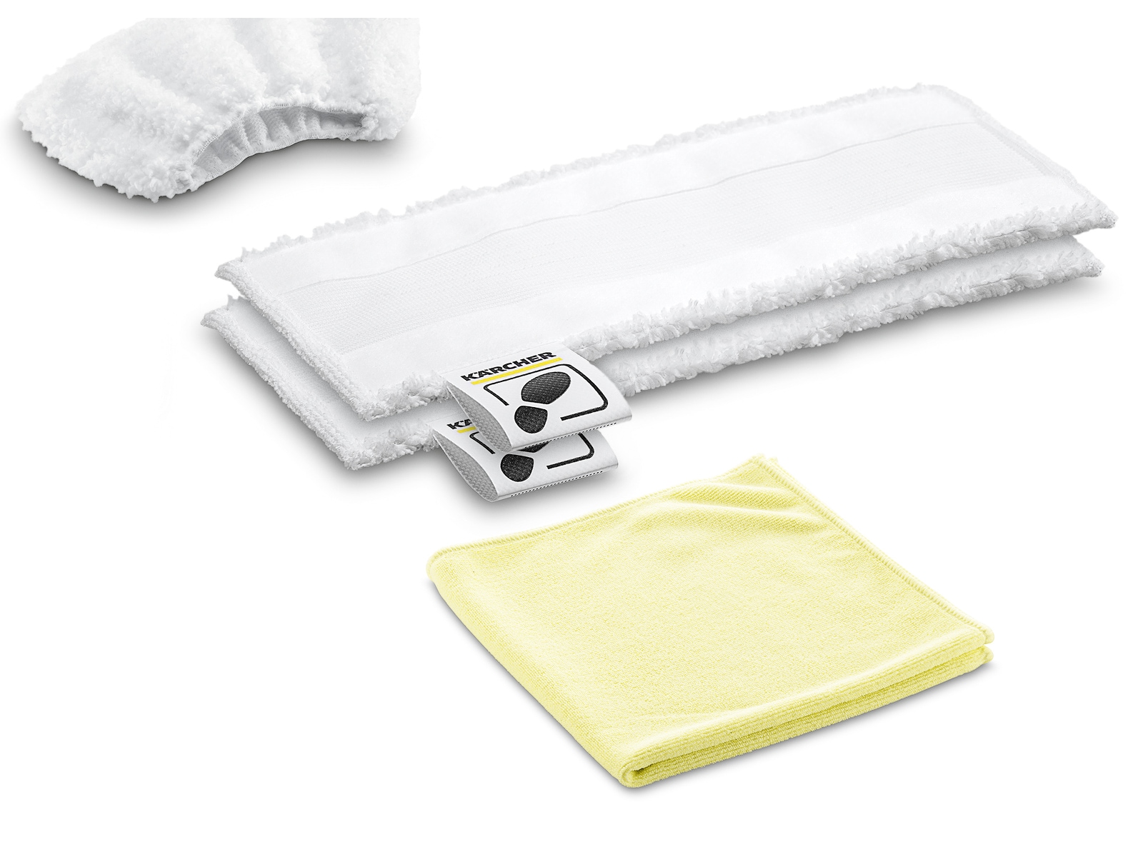 Sett med EasyFix mikrofibertrasor av hög kvalitet för ångrengöring i köket. Innehåller 2 st trasor för golvet, ett överdrag med slipande effekt för handmunstycket och en trasa för rostfritt stål.